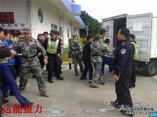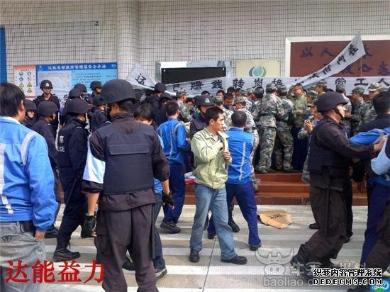 员工与拆迁队在工厂门口相持约十几分钟左右,工厂大股东法国达能方面通过石岩政府街道办,调来深圳联防队、深圳防爆队和派出所警力,对现场进行“维和”。到中午一点钟,约有40多名益力矿泉水厂员工被警方缉捕。