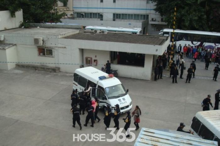 我们坐在仓库门口,他们什么话没说就把我们强行抓进警车