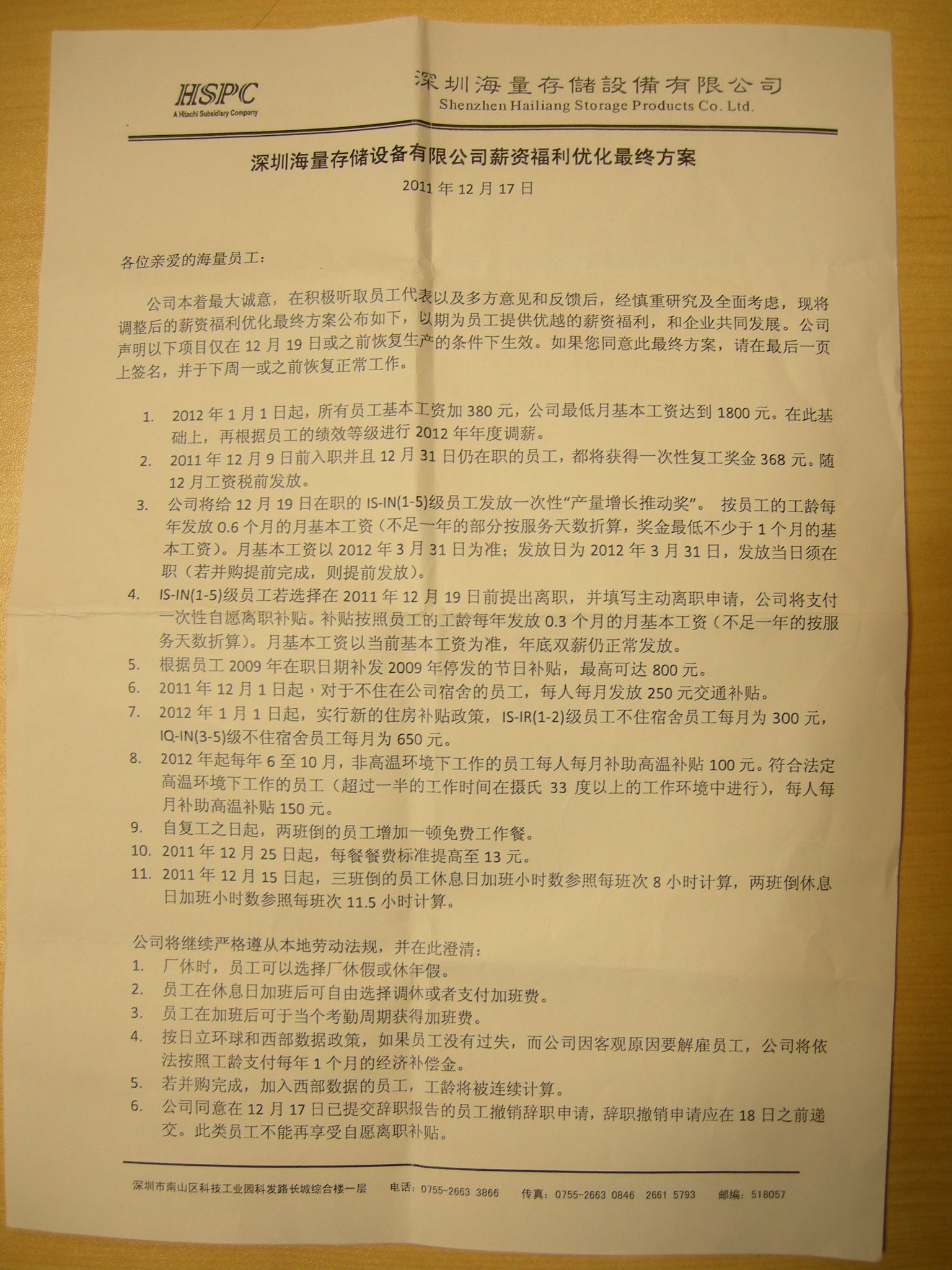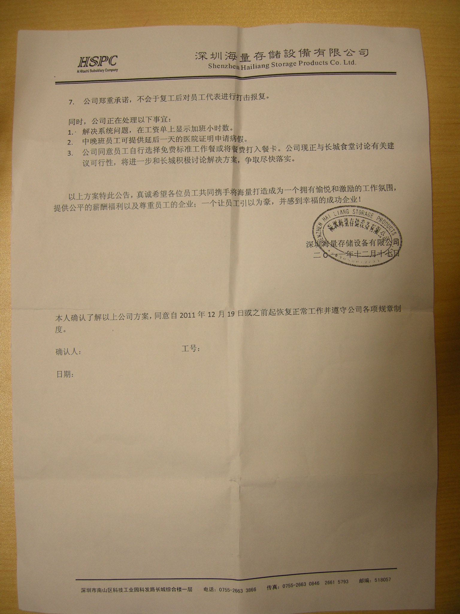 17日下午,资方抛出了忽悠工人的《最终方案》。金钱收买人员已到了班组这个级别。该《方案》与工人要求赔偿的2N+1方案有很大距离。罢工斗争进入新阶段,用一句话概括:收买已到极限,黎明即将来临。