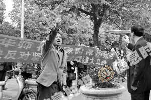 昨天下午2时许,华南师范大学教工俱乐部门前,聚集着众多的教职员工。他们情绪激动,议论纷纷。在维权活动发起者手中,拿着一份联名“反对紧贴北围墙建大马路”的教职工名单。至下午3时许,参加联名维权的教职工已经多达数百人。
