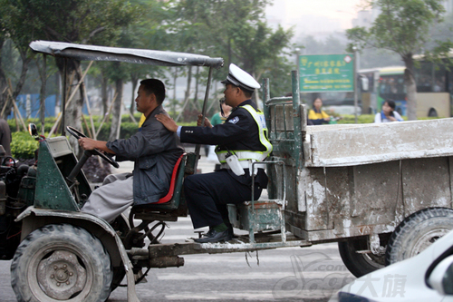据了解,陈某在黄埔一带靠拉运建筑材料谋生,一车货仅能挣20元。陈的拖拉机因为无证无牌最后还是被警方拖走。