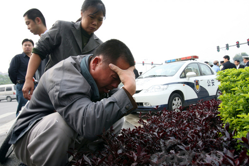 车主陈某的妻子闻讯带着两个女儿赶到现场