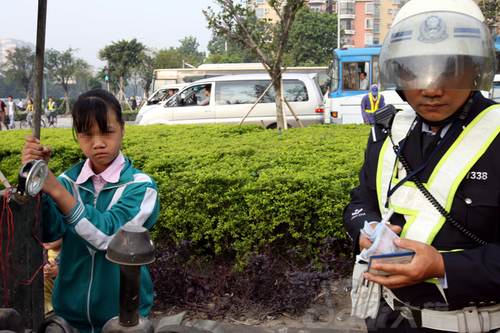 陈某的大女儿用仇恨的眼光盯着交警开出罚单