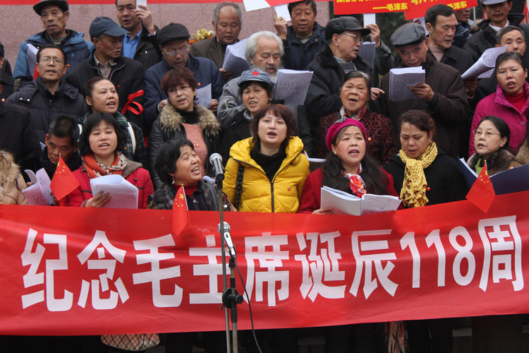 12月26日,来自全省各地的人民群众自发集结在湖南大学东方红广场纪念毛泽东同志诞辰118周年。活动还没开始,就有三三俩俩的警察、校管 人员、城管人员来试图驱赶聚集的人群。理由是集会没有申请、场地是湖南大学的、音响干扰教学等等,不一而足。人们不禁要问:平时成群结队的游客、参观者来此活动都经过申请了吗?这场地不是一直对外公共开放的吗?本广场离教学区有相当一段距离,音响声音有那么大干扰吗?不允许拍照,是谁给你的权利禁止别人拍照?群情激愤的纪念者一轰而上将他们驱逐了出去,这些不识时务的人灰溜溜的走掉了。