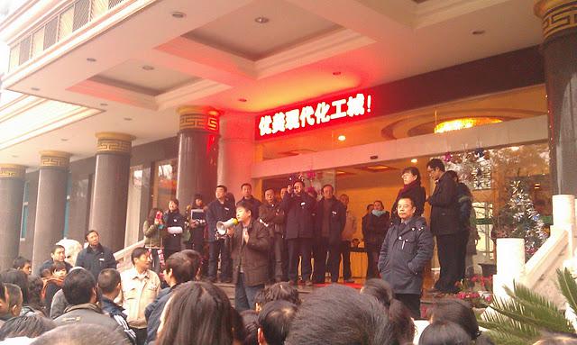 厂方有人表示,今年成都可能要上调最低工资标准,厂方将根据工资标准上调。厂方将会大量裁员,或者某些部门将面临关闭,今天领导仍然不敢面对职工的质疑,不敢正面对话解决问题。”