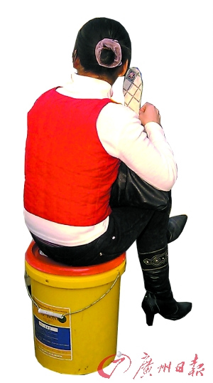这是外来工乘车使用的最实在的工具。在火车站广场,记者发现有八九个不同的外来工群体在使用各种款式的油漆胶罐,它已经成为外来工的最爱。