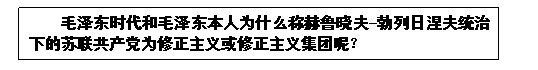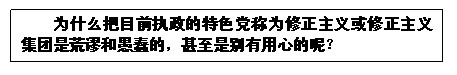 这样以来,肯定有人会提出质疑:毛泽东时代和毛泽东本人也称赫鲁晓夫-勃列日涅夫统治下的原苏联共产党为修正主义或修正主义集团。目前某国执政的特色党与赫鲁晓夫-勃列日涅夫时代的苏联共产党一样,都是打着马克思主义旗号,披着社会主义外衣,戴着共产党桂冠。为什么我们不能称特色党为修正主义或修正主义集团呢?从表面上看来,这一问题似乎有一定的道理。但是,用唯物论的认识论仔细分析一下就不难发现,这是一个既充满智慧又非常狡黠的教条主义问题。在回答这一问题之前,上官云湘反问一句,难道马克思主义者认识和分析问题仅仅根据事物的某些表面现象?孤立地、静止或片面地看问题的形而上学观点,不正是现代修正主义的典型表现吗?