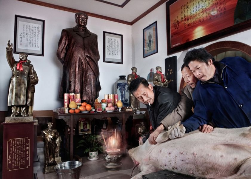 摄于2010年12月26日。在中国南方,杀猪来为已故国家主席毛泽东庆生很是常见。