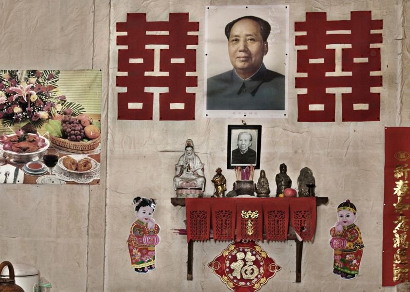 摄于2009年11月29日。在湖南很多家庭,墙上还是贴着不同时代毛泽东的画像