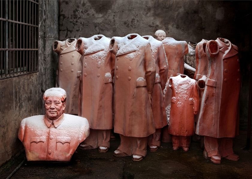 摄于2010年12月25日。湖南韶山一间工坊外,还陈列着大大小小未完成的毛泽东雕像。