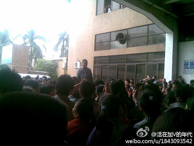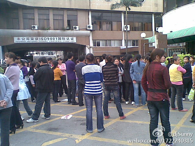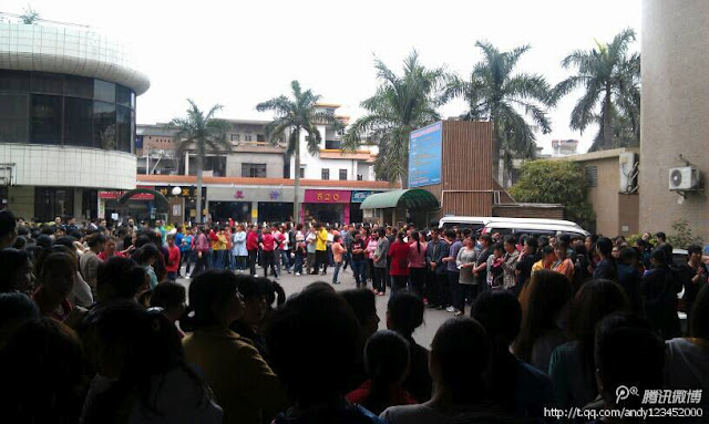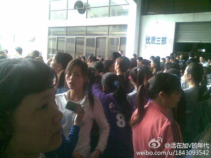 2012年3月22日,广州市番禺区大岗镇,兴泰鞋业全体员工举行罢工,抗议工资太低。