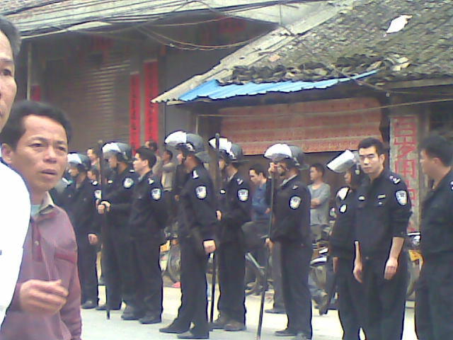 副县长黄炳金亲自带领4百名防暴警察赶赴现场,武力驱散群众,许多人被打伤害,十三人被捕。