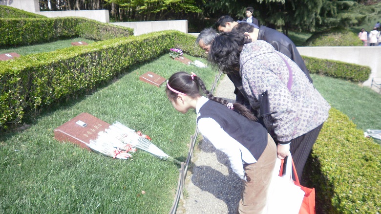 图四 上海革命群众来到了老红军李道南烈士墓前