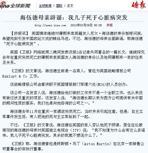 据调查,薄谷开来(薄熙来同志妻子)及其子同尼尔·伍德过去关系良好,后因经济利益问题产生矛盾并不断激化。
