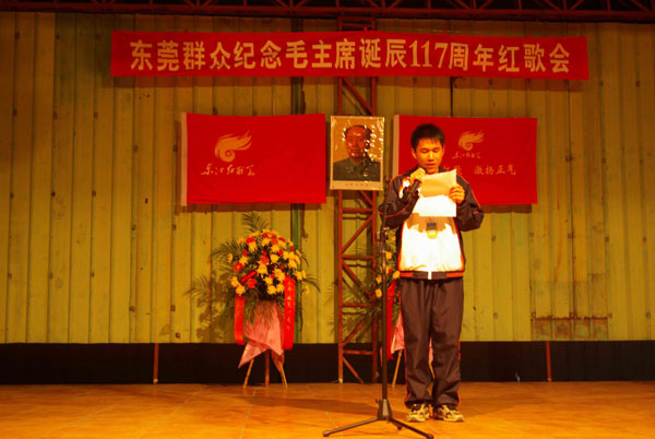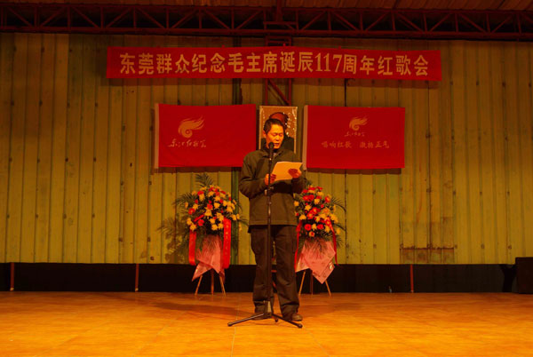 2010年12月26日晚上7点30分至10点10分,由近1500学生参加,由东江红歌会主办,东江论坛网站协办一场纪念毛主席诞辰117周年的纪念活动。