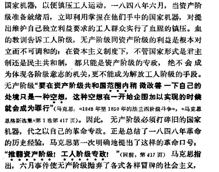 列宁在《国家与革命》中说:“‘自由的人民国家’是七十年代德国社会民主党人提出的纲领性要求和流行口号。这个口号只是市侩式的夸大了民主的概念,没有丝毫政治内容。既然人们当时可以合法地利用这个口号来暗示民主共和国,恩格斯也就从鼓动的观点同意‘暂时’替这个口号‘辩护’。但这是一个机会主义的口号,它不仅起了粉饰资产阶级民主的作用,而且表现出不懂得社会主义对任何国家的批评。我们赞成民主共和制,因为这是在资本主义制度下对无产阶级最有利的国家形式,但是,我们决不应该忘记,即使在最民主的资产阶级共和国里,人民仍然摆脱不了当雇佣奴隶的命运。其次,任何国家都是对被压迫阶级‘实行镇压的特殊力量’。因此任何国家都不是自由的,都不是人民的。在七十年代,马克思和恩格斯一再向他们党内的同志解释这一点。”