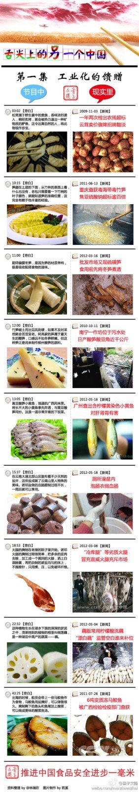 舌尖上的另一个中国--所有提到的食物无一幸免 推动中国食品安全再进一毫米。