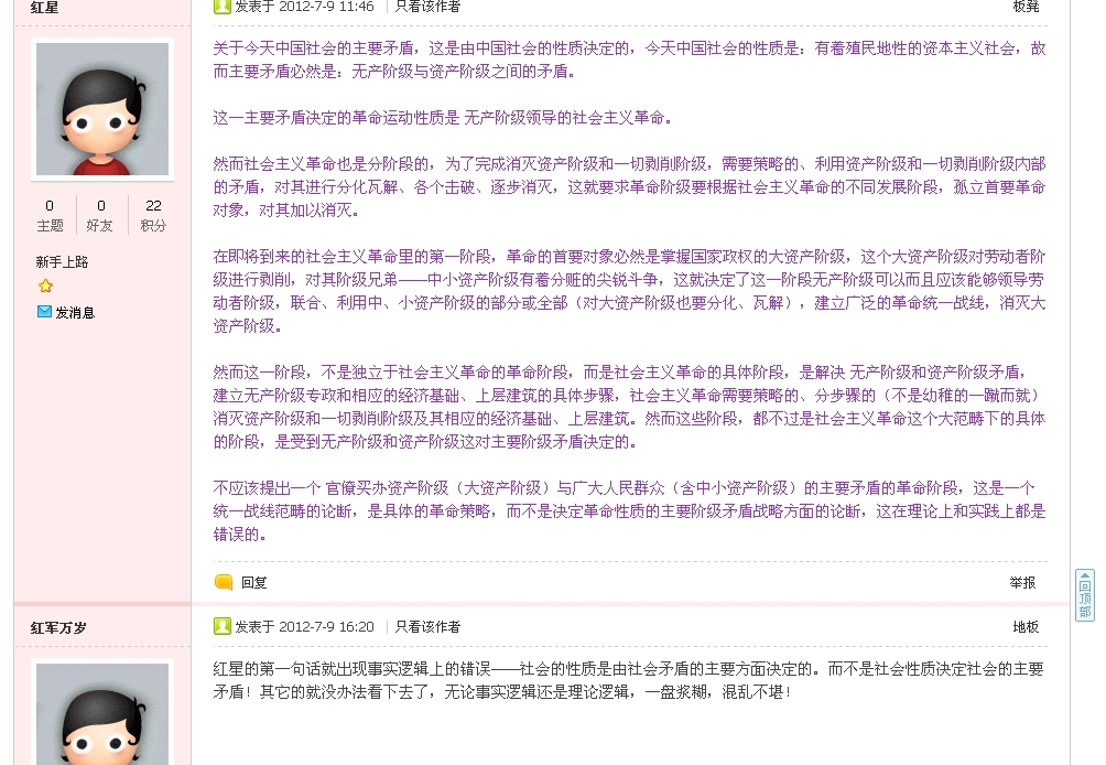 关于社会的主要矛盾、矛盾的主要方面的问题,即楼上所言的:无产阶级与资产阶级作为主要矛盾的资本主义社会,其矛盾的主要方面是资产阶级,因而得出社会性质是资本主义的。这里的逻辑关系是错误的。因为照这样推理,得出的应该是 资产阶级作为统治阶级的资产阶级专政——注意:这里不是推论出资本主义的社会性质,而是资本主义社会性质在阶级关系方面及在上层建筑方面的具体表现。而无论是 无产阶级与资产阶级的主要矛盾地位,资产阶级作为统治阶级的地位,皆是来自 生产资料资产阶级私有制为基础的资本主义生产方式——社会性质,是资本主义社会性质的具体特征。