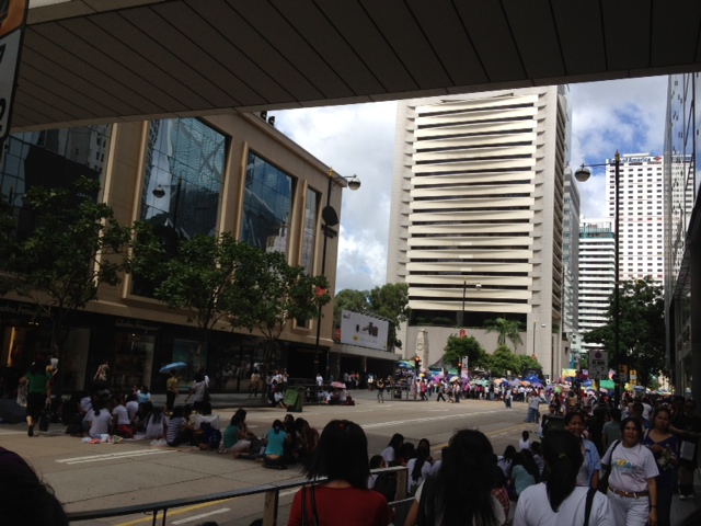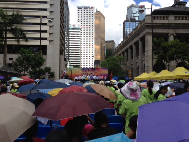 3)香港庞大的劳工队伍--菲佣(在香港菲佣、印佣、泰佣的人数大概36万),他们不在游行之列,他们在立法会门前聚集,参加教会活动,在香港,这些人的地位是最低的,很多人在香港当苦力7年以上,也没有资格成为香港市民(很像古希腊,奴隶是没有选举权和被选举权的)。