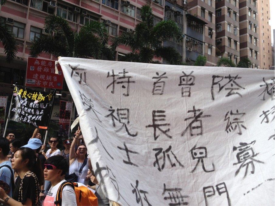 2)民间诉求,千奇百怪,大部分是民生议题,有养老的、教育的、住房的、雷曼苦主的、这些诉求切中了资本主义社会剥削劳动人民的本质,而这些诉求都是零散的,没有形成强大的无产阶级政党,香港无产阶级还没有独立形成其政治力量。