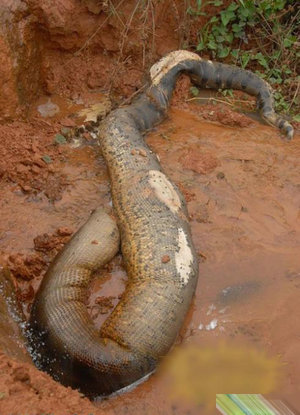发现的惨死的大蟒蛇尸体图片。网上一度疯狂谣传的挖出16.7米长的140岁大蟒蛇精图片事件。传辽宁新宾县修路挖出大蟒蛇精事件:神奇大蛇龄140年、蛇身16.7米长.在挖土施工山包上的确挖出两条大蛇,一条已经死亡,另(较小)一条已无踪影,该蛇(已死亡)是稀有的蛇种,全身金黄色,鳞片均匀坚硬,剧毒,身长1670.0 CM,长有蛇冠子, 蛇龄在140年左右,体重103公斤,蛇尸已交国家有关部门说是要进行研究。还有亚马逊森蚺,这些世界巨型罕物的尸体。