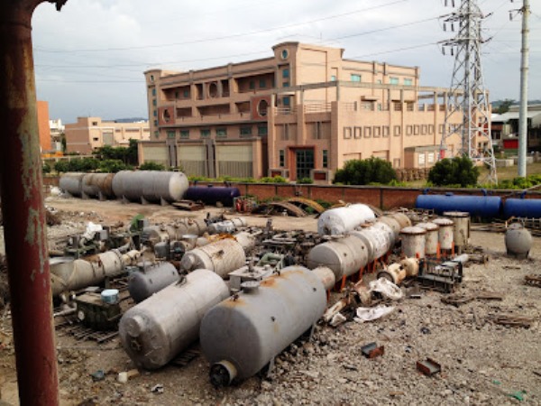 相较于女工的悲愤指控,男性工人直接带我们参观他们过去工作的厂房,闷热、幽暗的空间里放置着大型机具和传输管线,这是他们制作、加工人造纤维的的地方。他们不断向我们说明厂里各式各样化学物质的危险性,很显然,那不会是轻松的工作。问到是否有空调,他们大笑说:「那是给机器吹的,不是给我们吹的!」。