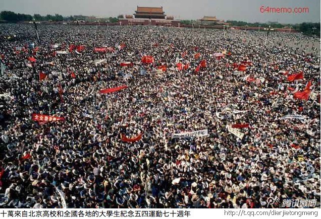 三 , 由 89 年 4 月初开始的游行示威到 4 月 26 号 , 被修正主义分子控制下的主流新闻媒体 : 人民日报发表社论 , 【 必须旗帜鲜明的反对动乱】 , 首先对这场最初的爱国民主运动从反面定了调子!一下子激起了广大人民群众,党员干部 , 学生更大的强烈义愤! 并波及了在党 , 政 , 军 , 公 , 检 , 法以及其他政府职能部门内工作的一大批有良知,正义感的同志们勇敢的站出来声援学生们的正义行动 !进入 5 月份 , 在首都街头的大学生请愿抗议的队伍中首先出现了高举和胸挂 “ 铲除腐败 ! 反对官倒 ! 坚决支持首都大学生的正义行动, 人民日报社论不是我们写的 , 科技日报被封 , 记者集体辞职 , 原因 , 说了真话 ” 等大幅标语的 200 多位新闻工作者的身影,到 5 月 17 号, 18 号的两天内,天安门广场已经是人山人海,水泄不通 , 标语铺天盖地 ! 本人亲眼所见由中国人民警官大学 , 北京市人民警察学校 , 北京市中 , 高级人民法院 , 北京市人民检察院 , 北京市工商行政管理局等单位组成, 身穿警服 , 制服的声援游行队伍 , 最令人抢眼的是 , 竟然出现了军队院校 , 医疗 , 科研等单位 , 由不穿军装的文职人员高举 “ 人民军队坚决站在人民一边 ” 等大标语组成的解放军游行队伍 ! 受到了大学生和群众的夹道欢迎 ! 由北京师范大学学生乐团演奏的【团结就是力量】的雄壮乐曲响彻天安门广场, 那天 , 光明日报的一位记者讲, 天安门广场举办大型庆典活动 , 一般容纳 150 万人 ,而这两天,保守估计,也有 200 万人以上,是自建国以来的 40 年中,实属空前罕见!