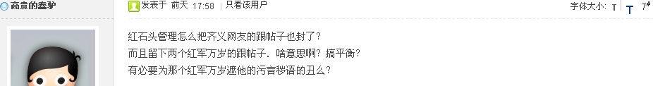 红军万岁对网友齐义肆意极度污言秽语式谩骂贴子莫名其妙地不见了。