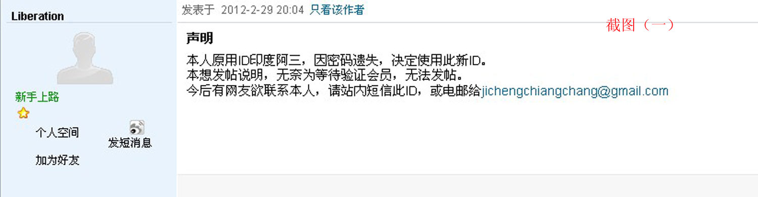 印度阿三与Liberation是同一个人,是不需要多少口舌的。见下面的截图(一)。