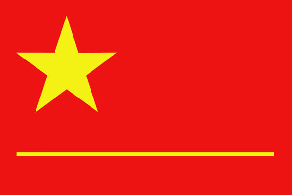 红色代表被剥削压迫的无产阶级的鲜血汇聚而成这面旗帜,也象征革命;黄色代表光明、奋进。五角星一颗,代表全国人民团结一心,也代表中革中央;一条线条代表社会主义公有制路线。旗帜含义:全国人民在中革中央的领导下团结一心,以两条路线斗争为纲,走社会主义公有制路线,奔向共产主义社会。