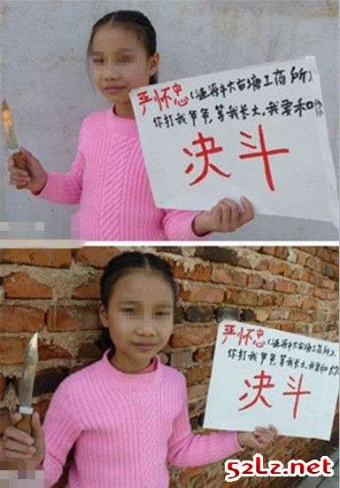 http://52lz.net/portal.php?mod=view&aid=13011月19日,手持小刀的女童站在街头,举着“你打我爷爷,我要和你决斗”牌子,女童叫刘敏婷,10岁。
