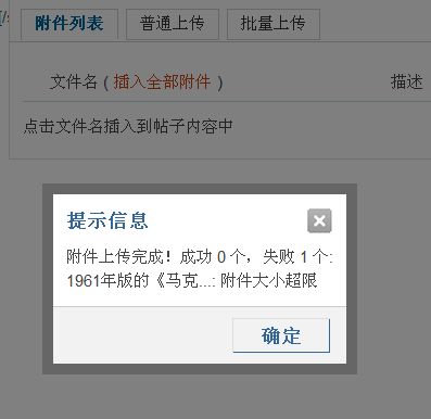 我这里显示不是文件大小的限制,是论坛功能缺失:上传的文件无法在文件列表中显示