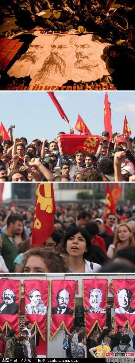 请大家注意了,土耳其工人打出的旗帜不再是镰刀与斧头,而是锤子与齿轮。这意味着什么,代表农民的镰刀已经逐渐退出历史舞台。