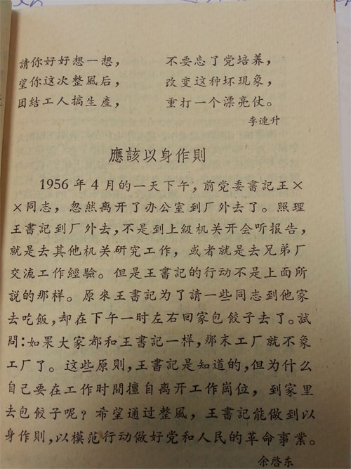 (2)对于一些干部强调业务第一,认为“业务就是政治”、不看报、不读书、不关心国家大事、只管业务不问政治的非政治倾向,以及另一方面,有一些党群系统的政治工作干部空谈政治、不钻研业务、甚至拒绝学习、不求进步的倾向,群众都表示不满。近几年来,由于一部分干部不认真钻研业务,影响到某些工业产品质量下降,或者是停滞不前,为其他省区所超过,工人群众和消费者对这种情况都有意见。至于个别同志对业务、政治两不关心,更受到群众的指责。