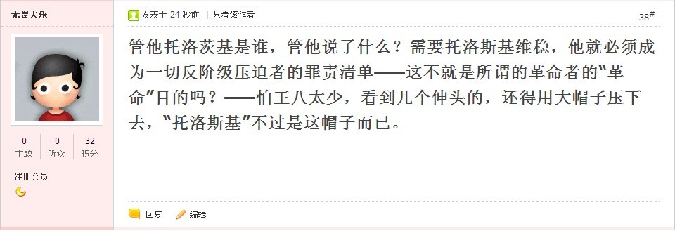 2、这个主帖明确地是在为托洛茨基辩护、鸣冤叫屈和翻案,是完全错误的。