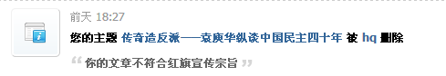 袁:总是有人对我讲,就是毛泽东在,也不会喜欢我这个造反派。我承认!但是,要投身中国的革命,还是必须跟他走。我因文革问题四次入狱,每一次第一个罪名都是“恶毒攻击伟大领袖毛主席”。除了整我的人强加给我的东西以外,我当时也确实说过一些不符合毛主席思想的话(恐怕这也是我与大陆今天一些主要反毛人物的区别,他们文革当年崇毛的调子要比我高得多),我在监狱中也对文革做过全面回顾与反思。几十年的反复思考,使我更认识到:毛主席在人类社会进步中的巨大作用,主要体现在文化大革命上。放手让6、7亿人口中的绝大多数(95%以上)直接地全面地行使广泛的民主权利,而不是仅仅为国家和地区选几个做主的人;应该说,在公司、工厂这些与自己切身利益息息相关的单位中个人尊严和民主,比当州长、总统的选民更重要!这是人类历史上仅有的一次最辉煌的“实验”和探索,其中难免有错误和挫折,不会有人说是完美的。