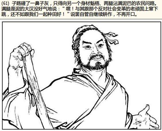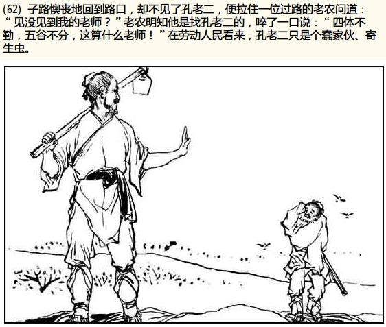这个孔子一心想着恢复奴隶制,找机会让子路难堪。所以,当他抓住了农妇因田赋重而破产这个机会时,就不失时机地挖苦子路,说出了“苛政猛于虎”这样的话,而且是倚老卖老,使用了“小子识之”这样的字眼,就是说“你小子给我记牢了”。