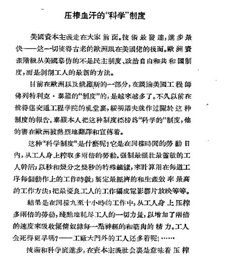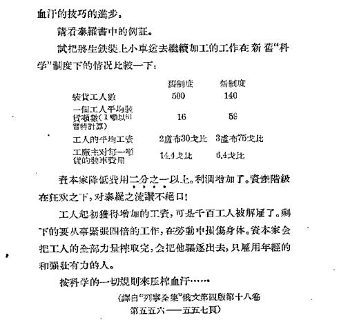 在现在中国的资本主义社会里的资产阶级各色御用文人们以及混迹于现代工人运动中各色机会主义份子们,他们就是把这个资本主义社会里的资本剥削雇佣力的关系掩盖起来,变成物与物的运动,变成了所谓科学技术的进步。