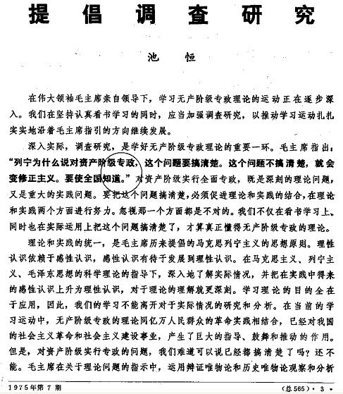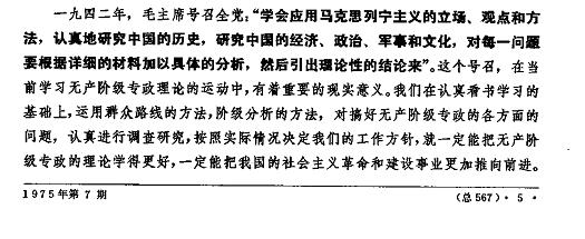 转载者按:这篇文章是新中国时代两报一刊中的《红旗》杂志1975年第七期中的文章,为保持文章的原貌与真实内容,特以截取扫描件的图片形式发出。马克思主义认为:我们共产党人从来不隐瞒自己的观点;我们共产党人从来不怕认真二字。学习并应用马克思科学真理的立场、观点和方法,认真地研究中国乃至世界的历史事实和现实事实,对历史事实和现实事实中的每一个问题在掌握详细资料的基础上,加以具体历史条件、具体客观现实条件的具体地辨证分析,然后引出符合现实阶级社会中的阶级斗争规律的正确结论。