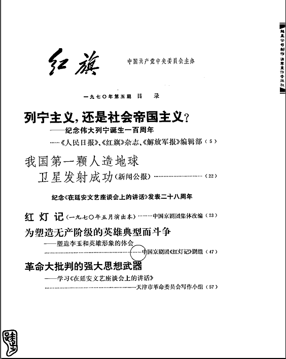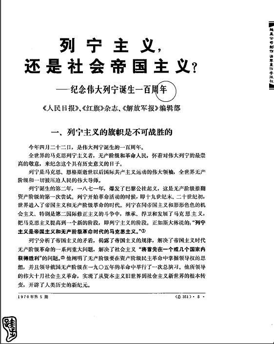 “现在,随着时间的推移,出现了一些新变化,自从中国的官僚资产阶级在其文本中,出现反对‘西化分化’之类的字眼后,中国的张宏良及其庸虿们,就开始从破旧的老字典中翻腾出原来‘西化’、‘西化派’的词句,并给之特意贴上民族主义的标签,他们这样做,恰如他们臆造出来的‘左派带路党’一样,其目的是为了保皇,喧染民粹主义,以便维护官僚资产阶级的统治。”