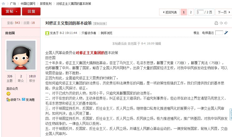 田忠国,是一个隐藏极深、欺骗性极大的假左反革命分子,它的御用文章表面看是一个非常革命的“革命者”,但欺骗不了真正的革命者的慧眼。它的御用文章里用了很多欺骗性极大的反革命词语。