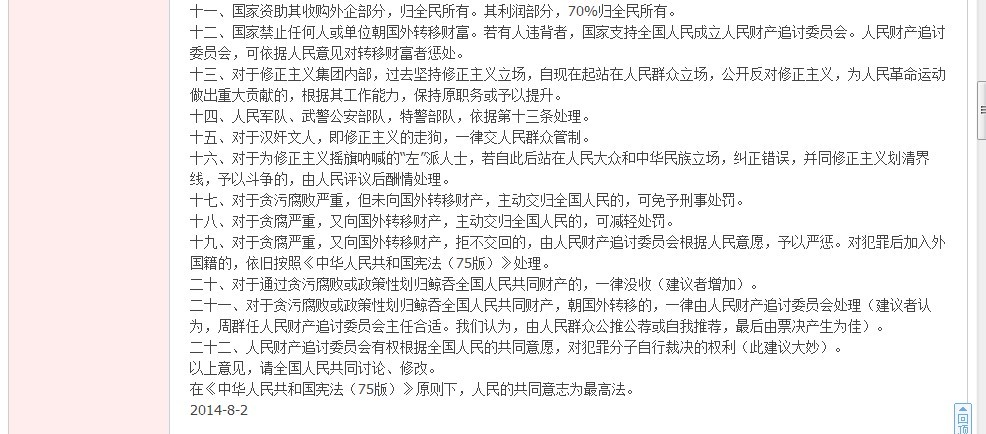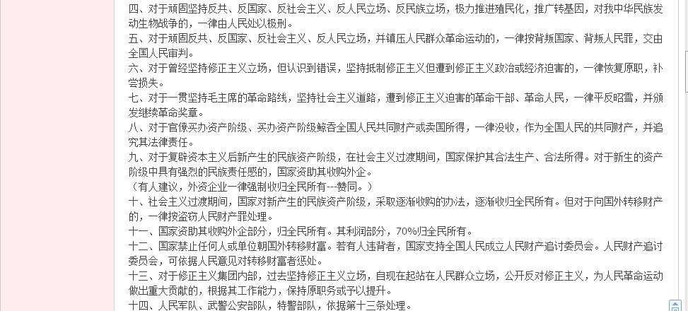 3、“走资派”——指在社会主义公有制下,想走资本主义私有制道路的人和团体。它把今天霸占生产资料的十大家族说成是1976年前的走资派。它把今天被倒退复辟了的资本主义私有制说成还是1976年以前的社会主义公有制。