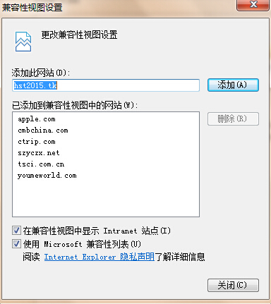 2)在ie浏览器中的菜单中选择【工具】-【兼容性试图设置】,见到如下画面: