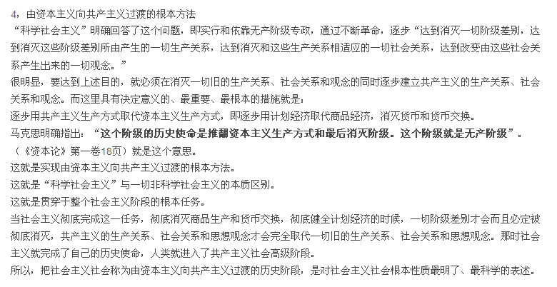“科学社会主义”原理明确指出社会主义本身是“过渡阶段”。而不是列宁、斯大林所说“在资本主义与社会主义之间存在一个过渡阶段”。