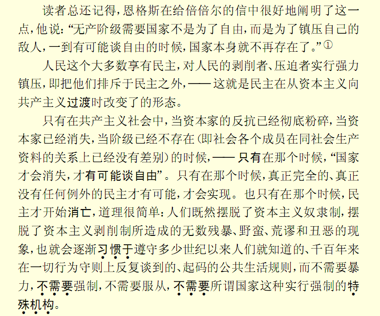 这两段论述是矛盾的,是为了否定列宁错误地理解,或者按照高守研的说法是修正了马克思主义言的,正是这两段内容,我揣测高守研究可能没有读过列宁的《国家与革命》