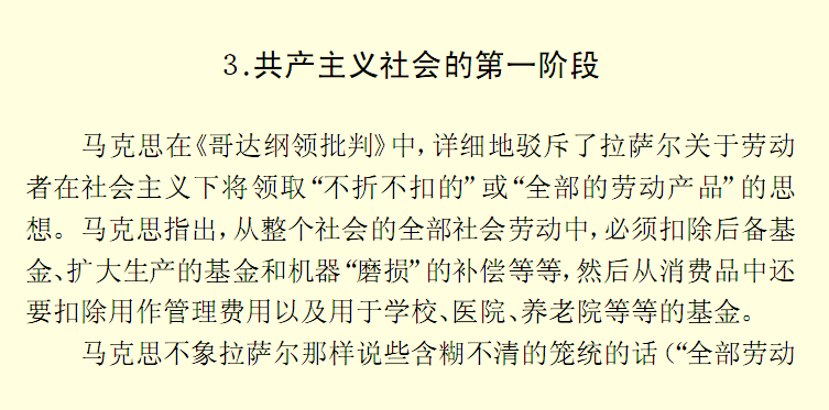 所以,所谓“社会主义社会”只能是指由资本主义社会向共产主义社会过渡的历史时期,即指“共产主义第一阶段”。