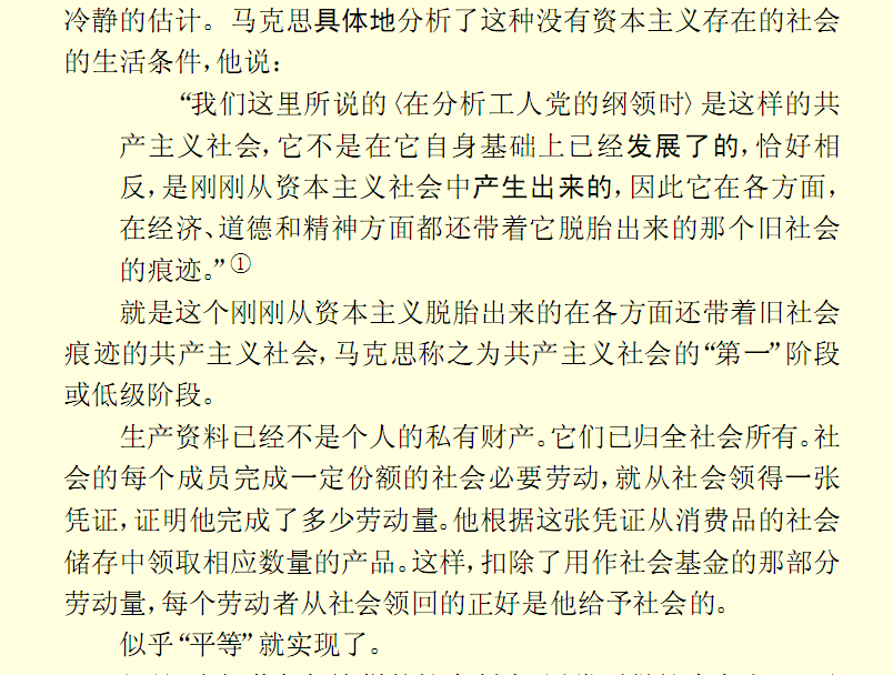 十分明显,马克思在此所说的“社会主义”就是他在《哥达纲领批判》中所说的“共产主义第一阶段”。