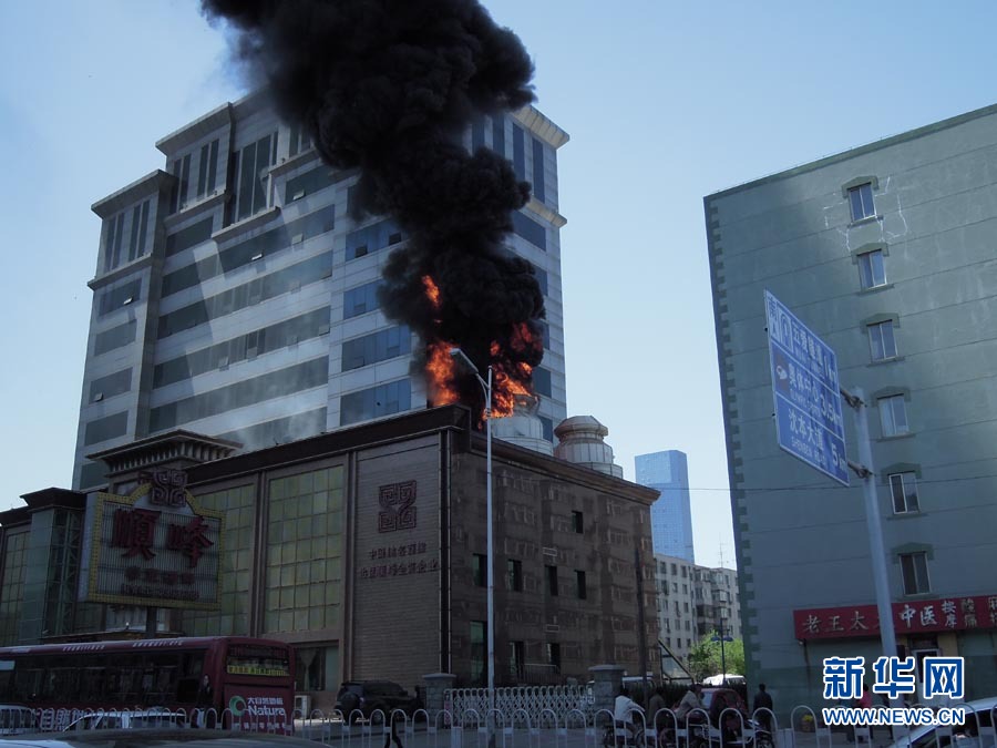 这是5月15日拍摄的沈阳市城建局办公楼起火,浓烟滚滚。当日11时30分许,沈阳市城建局办公楼突然起火,随后明火被赶来的十几辆消防车扑灭。 新华社发(卢俊德 摄)