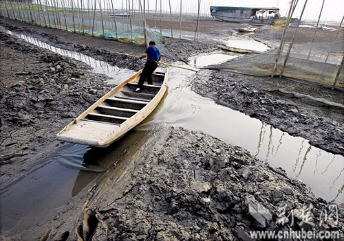 洪湖水位低落,岸边干涸见底。今年以来,洪湖遭遇70年一遇的特大干旱,降水量与往年相比减少七成,53万亩洪湖水面减少了14,湖水最深处只有30多厘米。干旱不仅让水产养殖遭受灭顶之灾,更让洪湖湿地的生态受到非常严重的打击。