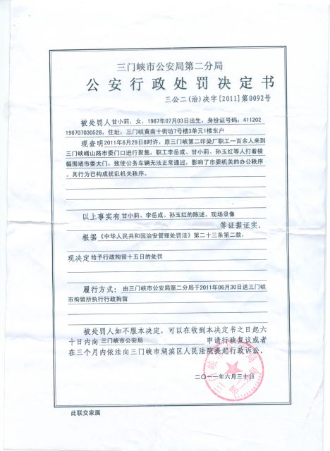 编者按:公安机关是官僚资产阶级的统治工具,为了压迫与镇压无产阶级,才不管是什么日子呢! 在全国各地开展轰轰烈烈的建党九十周年纪念活动之际,6月30日,河南三门峡的党政官员却是别出心裁,通过抓捕三名工人表明了他们的态度。